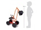 Dětský bagr s otočným ramenem a stabilní kovovou konstrukcí. Disponuje čtyřmi plastovými koly o průměru 20 cm a měkčeným sedadlem ve výšce 35 cm.