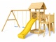 Nejprodávanější sestava spojuje věž se skluzavkou, lezecké prvky a houpačky v jednom celku. Předmontované díly a masivní konstrukce výrazně usnadňují montáž a zajišťují vysokou stabilitu.