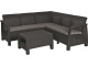 Elegantní a funkční komplet Corfu Relax v grafitovém provedení značky Keter/Allibert. Lehká ale stabilní a pevná konstrukce se vyznačuje vysokou kvalitou použitých materiálů a souprava Corfu Relax není výjimkou. Kromě kvalitního materiálu přináší také nádherný vzhled a vysokou odolnost. Souprava se skládá z rohového sofa s pohodlně tvarovanými zády a stylového stolku a je dodávaná včetně pohodlných šedých podsedáků.