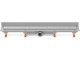 Lineární plastový žlab Chuděj s bočním odtokem ke stěně D 40 je sprchový odtokový žlab, který splňuje normu EN 1253. Je ideálním doplňkem každého moderního interiéru koupelen, saun a relaxačních prostor. Jejich výhodou je snadná montáž, demontáž při čištění sifonu a použití v bezbariérových prostorách. Žlab umožňuje boční připojení na kanalizační potrubí Ø 40 mm.