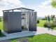 Elegantní zahradní domek s moderní sedlovou střechou a lemujícím světlíkem z akrylového skla. Trojnásobná závora s cylindrickou vložkou a tlaková plynová pružina ve dveřích. Konstrukce z vysoce kvalitní pozinkované oceli s dodatečným vypalovacím lakem s polyamidem.