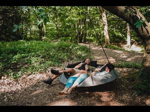 Přenosná kruhová rodinná houpací síť Hangout Pod, poskytující pohodlí a dokonalý úkryt před světem na vaší zahradě, na cestách nebo doma.