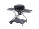 Velký zahradní kotlový gril na dřevěné uhlí s poklopem a bočnimi odkládacími policemi. Gril má dvojí regulaci proudění vzduchu.Topeniště je vybaveno nejen velkým chromovaným grilovacím roštem, ale také roštem na dřevěné uhlí. Spodní část topeniště je opatřena popelníkem s regulací intenzity hoření. Kola slouží ke snadné manipulaci s grilem. Spodní část grilu tvoří odkládací police. Vrchní police je doplněna háčky pro zavěšení grilovacího náčiní.