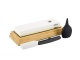 Brusný kámen z korundu je uložen v bambusovém bloku s výřezem na míru. V balení naleznete i keramické hladítko pro srovnání a zahlazení povrchu kamene po broušení, nechybí ani praktické a šikovné vodítko s nastaveným úhlem broušení (15 °) nebo balonek pro dávkování vody či oleje k broušení.