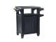 Se stolem Unity získáváte uzavíratelný úložný prostor o objemu 105 l a vrchní nerezovou kuchyňskou desku k přípravě nejrůznějších pokrmů a drinků. Stůl má rukojeť s háčky pro pověsení utěrek či grilovacího nářadí. Snadná manipulovatelnost je zajištěna kolečky, kterými je stolek vybaven.