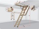 Dřevěný žebřík má komfortní 8 cm hluboké nášlapy s protiskluzovými drážkami a horní část je dostatečně vzdálená od víka, což umožňuje pohodlné užívání. Nová konstrukce závěsného systému automaticky při rozkládání oddaluje žebřík od víka, díky čemuž se zjednodušuje manipulace.
