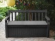 Stylová zahradní lavice v imitaci přírodního dřeva je vyrobená z odolné umělé pryskyřice. Slouží pro posezení dvou osob, vybavená dvěma područkami a nabízí úložný prostor se štědrou kapacitou až 265 litrů.