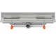 Lineární plastový žlab ke stěně s nerezovým rámečkem, bočním odtokem a bez mřížky. Unikátní dvojitý protizápachový systém, nízká stavební výška a výšková nastavitelnost v rozmezí 65 - 87 mm.