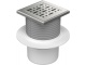 Náhradní nástavec pro podlahové vpusti Chuděj v nerezovém provedení o rozměru 150 x 150 mm.