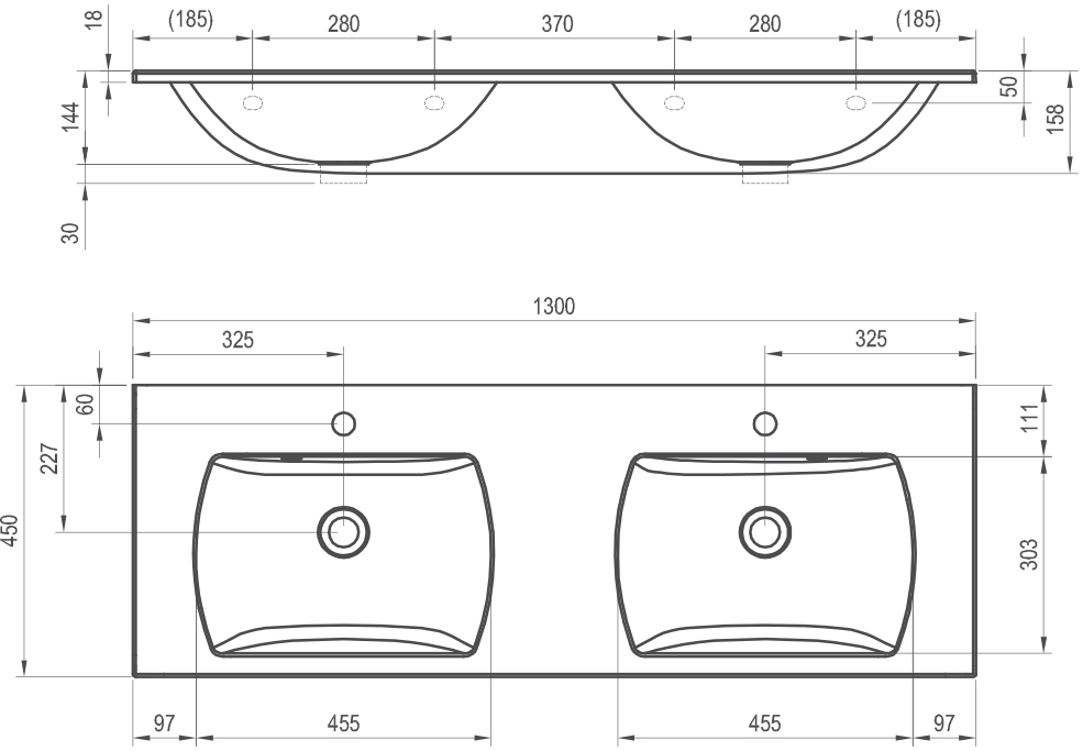 Fotó - Ravak Dvojumyvadlo Classic Slim 130, s otvory pro baterie, s přepadem