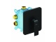 Az R-box Vari RB 072.50 falsík alatti keverőcsap alapteste nem része a keverőcsapnak, külön kell megvásárolni . Az R-box Vari a falra rögzítéshez szükséges anyagokat tartalmazza, nem tartalmazza a vízcsatlakozásokat vagy egyéb vízvezeték-szerelési anyagokat. Az R-box Vari a keverőcsap belső testének működőképes műanyag fedelét tartalmazza, amely az R-boxban tárolódik, és amely a fürdőszobai vízelosztást akkor is teljes mértékben működőképessé teszi, ha a keverőcsap felső része le van véve. Ez a műanyag rész lehetővé teszi a vízelosztás légtelenítését a víz elzárása nélkül. Az R-box felső része egyértelműen megjelölt, egy nyíllal a keverőcsaptest helyes tájolásához.