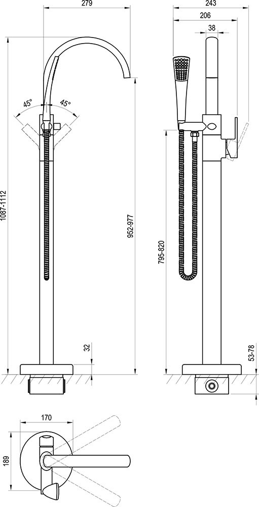 A padlóra szerelhető csaptelep 100%-os szabadságot biztosít. Ön dönti el, hová helyezi a kádat. És azt is Ön dönti el, hogy hová építi be a kádat.