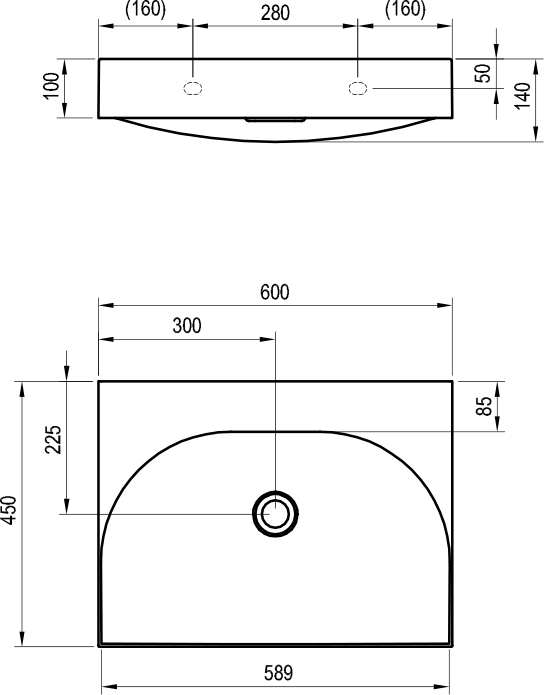 Könnyű, bútorszerű mosdó öntött márványból, falra szereléshez vagy felsőszekrénybe süllyeszthető kivitelben, túlfolyó nélkül. Fehér kivitelben. Lyuk nélkül - rejtett mosdócsapteleppel kombinálható.