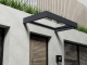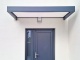 Modern előtető a bejárati ajtó felett, erős és tartós szerkezettel, letisztult vonalakkal.