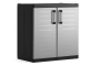 Bezúdržbová skříň pro multifunkční využití v garážích, dílnách i domácnosti, snadná montáž 2 poliček, nosnost jedné police 25 kg, možnost uzamčení, vysoká odolnost. Kvalitní plast. Šedá.