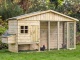 Maxi kurník pro drůbež Bielefelder o rozměrech 302 x 90 x 180 cm se hodí k chovu velkých hejn drůbeže. Mezi jeho hlavní přednosti patří kukaň na vejce, díky které se vejce nerozbijí.