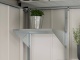 Vnitřní barva domku je šedobílá, vnější barvu lakování lze volit z barev antracitová šedá, antracitová metalická nebo šedý hliník. Domek disponuje jednokřídlými dveřmi s průchozí výškou 195 cm, mají uzamykatelnou kliku a skyté panty. Jsou umístěné na straně, kterou definuje šířka. Lze je instalovat vlevo či vpravo podle potřeby uživatele. Pro modely s šířkou 2,1 m lze mít volitlně i dveře dvoukřídlé.