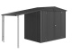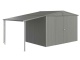 Postranní střecha je praktickou součástí dodatečné výbavy zahradního domku Europa. Slouží k vytvoření otevřeného prostoru zleva, zprava nebo dokonce oboustranně, který lze využít jako ideální místo k odpočinku s rodinou a přáteli nebo jako přístřešek pro dřevo, zahradní techniku, motorku či automobil.