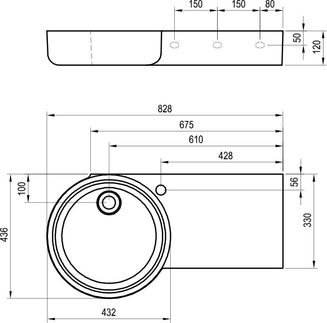 Umyvadlo ARC 83/43 P s odkládací plochou na pravé straně. Umyvadlo není vybaveno přepadem, proto je nutné použít pevnou umyvadlovou piletu, která zabraňuje přetečení vody. Umyvadlo je určeno pro kombinaci s umyvadlovou podomítkovou baterií.