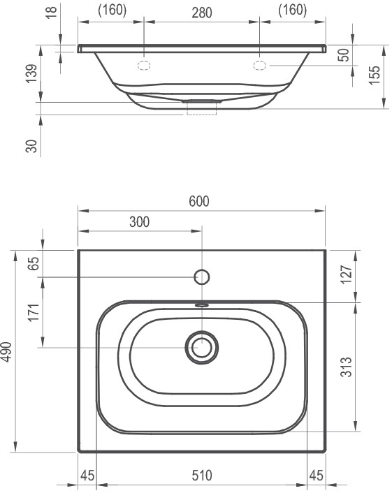 Foto - Ravak Umývadlo Chrome Slim 60, s otvorom pre batériu, s prepadom