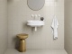 Yard nepotřebuje žádný nábytek. Instaluje se přímo na zeď pomocí ocelové konzole. A tu neskrýváme. Naopak. Konzole ladí s tvarem umyvadla a podtrhuje jeho celkový dojem.