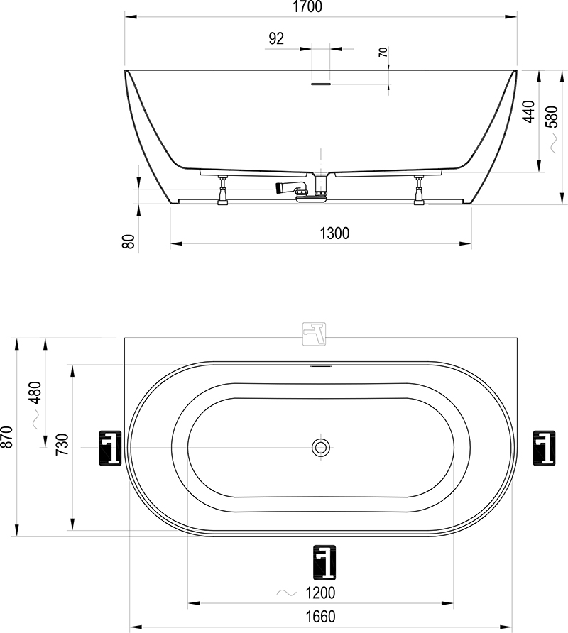 Vanu nelze doplnit vanovou zástěnou. Vanový odtokový komplet (tj.