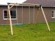 Záhradná hojdačka s nosnou konštrukciou z tlakovo impregnovaného dreva, určená na bezpečné vonkajšie použitie na záhradách a detských ihriskách.