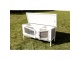 Bielo šedé prevedenie s dvoma dvierkami a zaisťujúcim mechanizmom, odklápacia strecha s pántami s aretáciou, vyberateľná pozinkovaná podlaha pre ľahké čistenie a vysoko kvalitné pletivo na predných dvierkach. Ďalej ponúka praktickú deliacu stenu s priechodom do odpočinkového priestoru a plastové nožičky na ochranu dreva pred vlhkosťou.