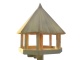 Búdka na vrchole kŕmidla je vyrobená zo starostlivo vyberaného smrekového dreva. Hobľované palubovky s hrúbkou 15 milimetrov. Spodná hrana vtáčej búdky je vybavená nízkou ohrádkou, ktorá zabráni vyhadzovaniu vtáčieho krmiva do priestoru pod krmítko.