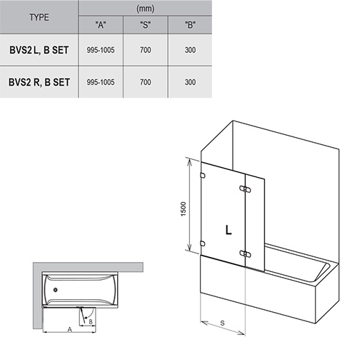Dvojdielne sklo k zástene na obdĺžnikové vane. Sklo je ošetrené ochrannou vrstvou Ravak AntiCalc®. Ľavý variant. B SET obsahuje kvalitné kovové úchyty a objednáva sa zvlášť v zhodnom ľavom variante.