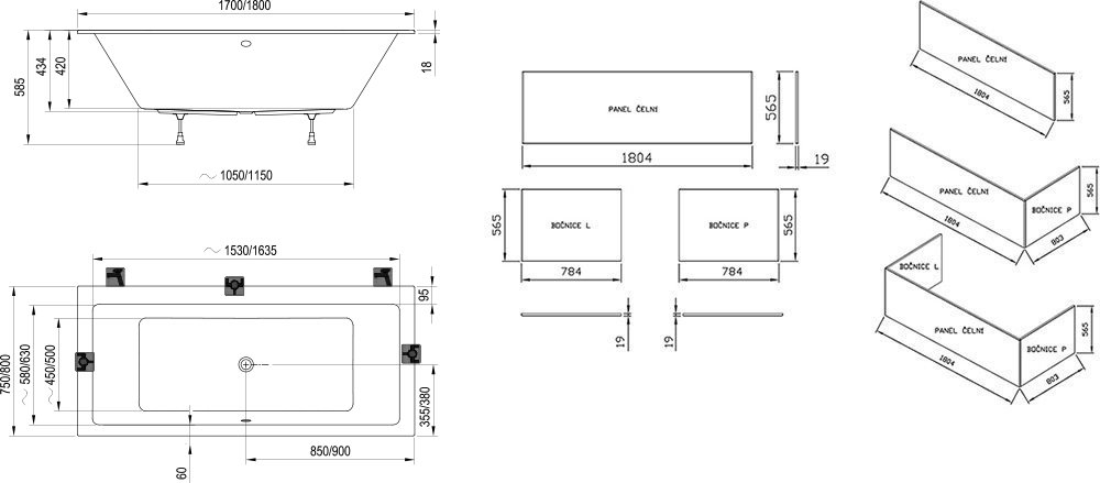 Vanu Formy 01 Slim je možné zapustiť do obmurovky. Vanu možno doplniť vanovou zástenou CVS2, VS2, VS3, VS5, PVS1, NVS1, BVS1, BVS2. K vani možno dokúpiť čelný aj bočný panel z MDF desky v bielej farbe. Systém prichytenia čelného panelu je súčasťou panelu, nie je potrebné dokupovať panelkit! K vani je nutné použiť Vanové odtokové komplety > s dĺžkou 80 cm.