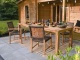 Záhradný stôl je vyrobený z dohladka zhobľovaného teakového dreva. Okolo stola môže zasadnúť štyri až šesť dospelých ľudí.
