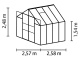 Konstrukce skleníku je tvořena samotným rámem z eloxovaného hliníku o síle profilů 1,2 mm. Dále je třeba zdůraznit použití nerezové oceli potřebné k ukotvení zasklení. Významným prvkem jsou praktické dvoukřídlé posuvné dveře a dále obsahem balení jsou ventilační okna s manuálním otvíráním, lze dokoupit originální automatický otvírač a řadu dalšího vhodného příslušenství pro skleníky.