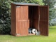 Skříň s pultovou střechou s rozměry 145 x 65 x 185 cm je vhodná na úschovu zahradního nářadí a sportovního vybavení.