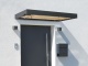 Moderní, čistá vchodová stříška německé výroby. Vyniká krásou použitých materiálů. Konstrukce je vyrobena z práškově lakovaného hliníku v matné antracitové barvě. Výplň tvoří kombinace bezpečnostního skla a dřeva. Stříška má také chrlič dešťové vody.