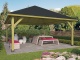 Zahradní altán ze smrkového dřeva o rozměrech 560 x 560 cm s jehlanovou valbovou střechou na masivních stojkách.